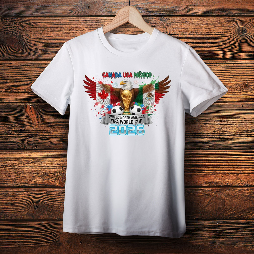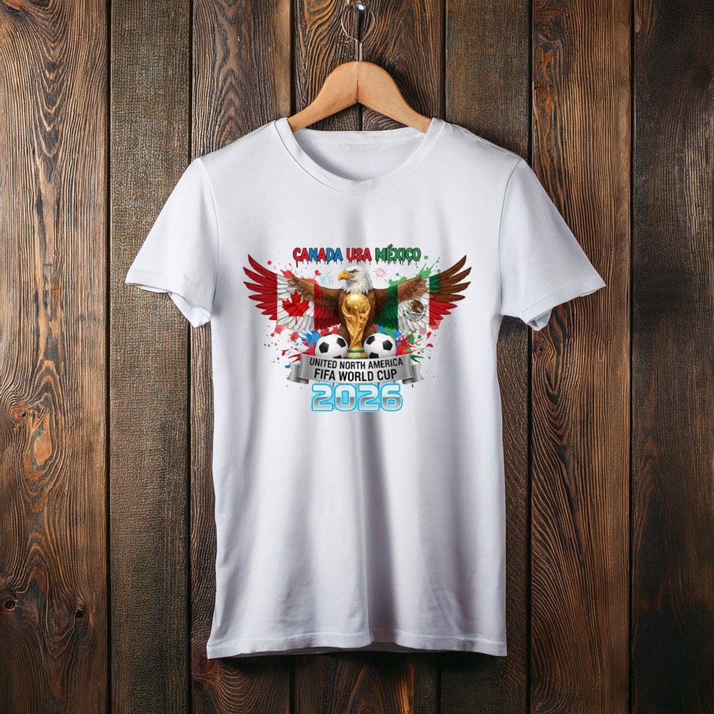 World Cup 2026 fans, North American soccer supporters, Canada–USA–Mexico fans, match-day outfits, fan festivals, watch parties, casual streetwear lovers, or anyone looking for a football t-shirt that represents unity, strength, and the pursuit of championship glory.