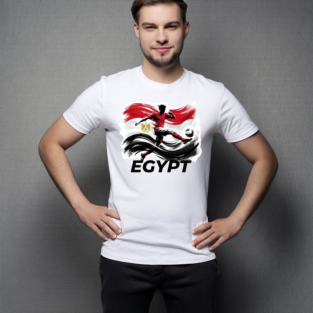 Egypt football fans, World Cup 2026 supporters, soccer lovers, match-day outfits, watch parties, stadium wear, or anyone looking for a bold Egypt soccer shirt that celebrates player action, pride, and the global game.