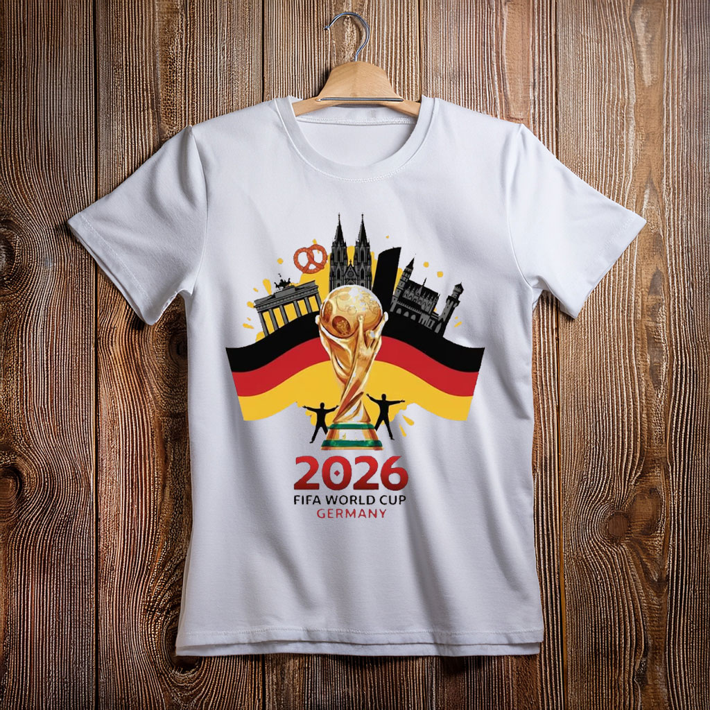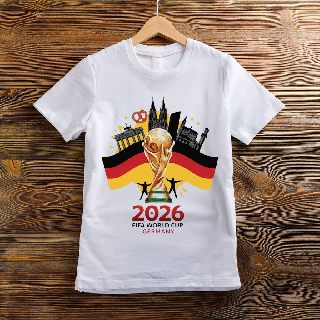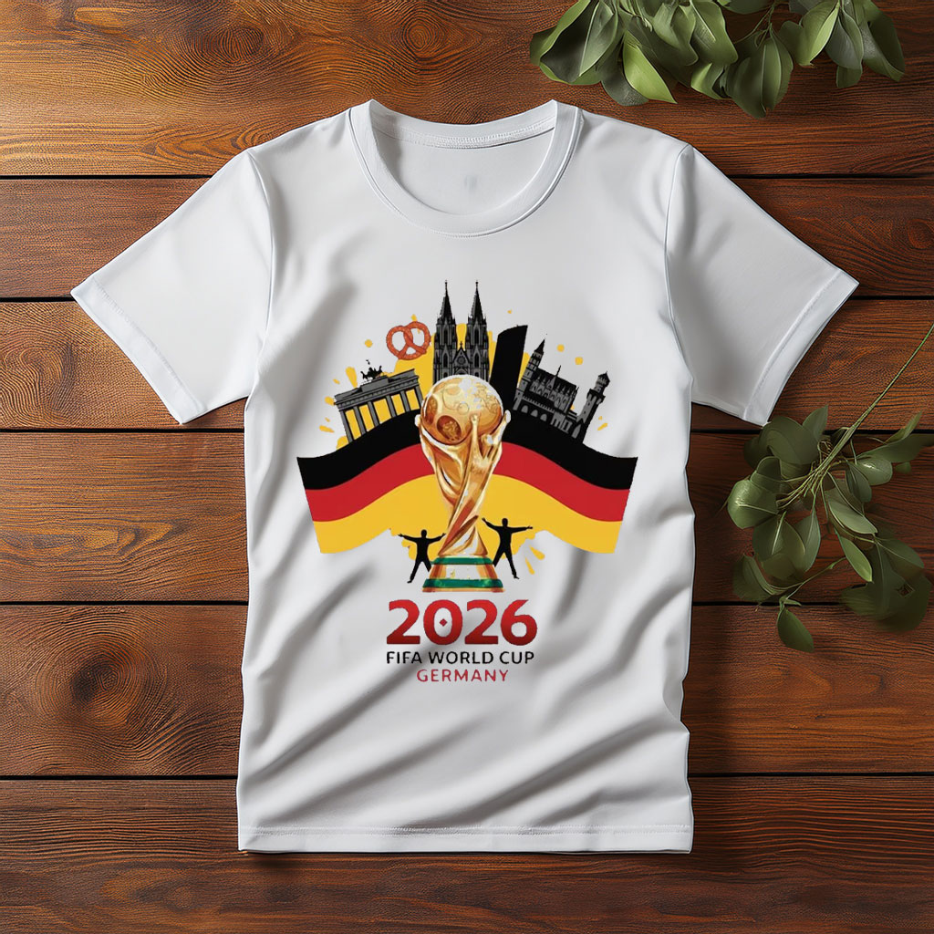 The design blends classic World Cup prestige with a clean, modern composition, keeping the focus on confidence and national pride. Strong balance and sharp detailing make this shirt perfect for match days, watch parties, or everyday streetwear that proudly represents German football culture.
