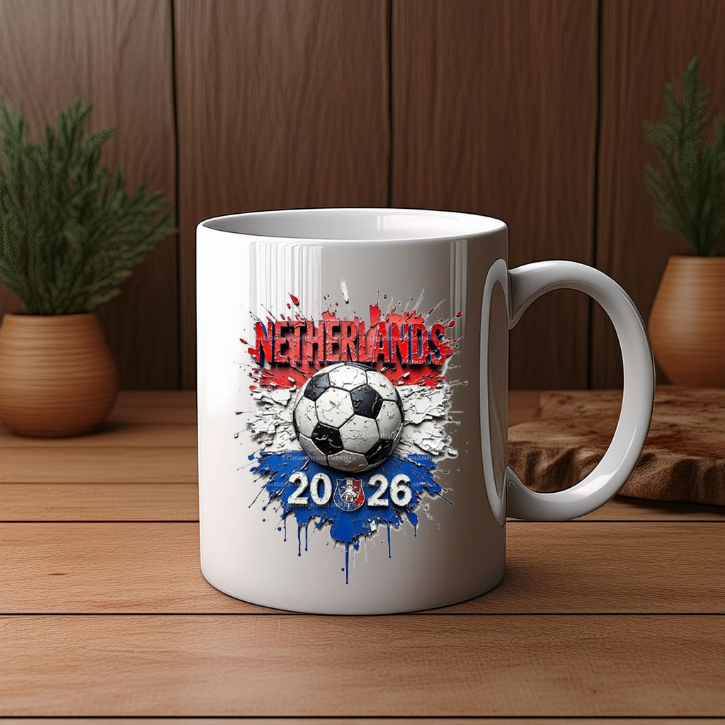 Netherlands soccer fans, football supporters, World Cup 2026 followers, match-day coffee moments, office desks, fan gifts, or anyone looking for a soccer-themed mug that represents national pride, passion, and love for the game.