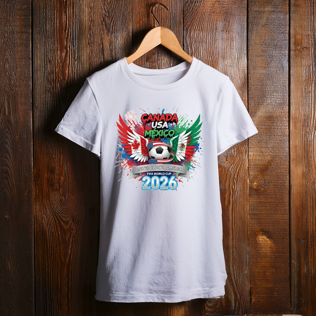 World Cup 2026 fans, North American soccer supporters, Canada–USA–Mexico fans, match-day outfits, fan festivals, watch parties, casual streetwear lovers, or anyone looking for a football t-shirt that represents unity, energy, and the rising spirit of the game across North America.